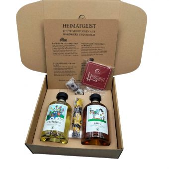 Erleben Sie einen exklusiven Geschenkkarton mit zwei edlen, holzfassgelagerten Spirituosen aus traditioneller Herstellung. Dieses hochwertige Set vereint Zwetschgenbrand und Apfelbrand zu einem einzigartigen Geschmackserlebnis – perfekt für Genießer und als stilvolles Geschenk.