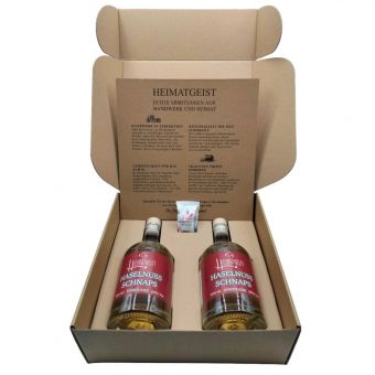 Heimatgeist Haselnuss Geschenkbox – 2 Flaschen Haselnussschnaps mit liebevollen Extras je 500ml 40% Vol.