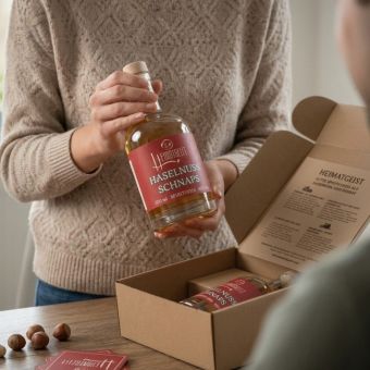 Mit der Heimatgeist Haselnuss Geschenkbox schenken Sie nicht nur einen edlen Haselnussschnaps, sondern ein Stück Heimat, Genuss und Freude. Jetzt bestellen und besondere Momente unvergesslich machen!