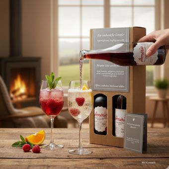 Holen Sie sich jetzt den Amerie Münsterländer Aperitif nach Hause und erleben Sie die prickelnde Frische des Münsterlands – alles geschenkfertig verpackt!