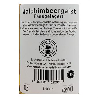 | Verkehrsbezeichnung | Waldhimbeergeist - Holzfassgelagert |